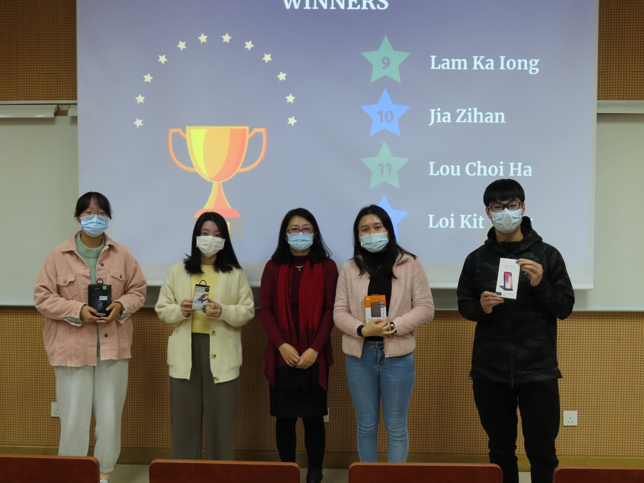 In the first session of the ceremony, the Director of ELC, Prof. Katherine Chen gave an opening speech for all the participants and presented the prizes to the winners of the “2020 ELC i-Learner Contest”. She mentioned that successful English learning takes regular and persistent practice, and she was happy to see the students using the “i-Learner English for Universities platform” for regular practice to improve their English. More than 600 current ELC students participated in the i-Learner Contest and the top twelve won the prizes. The top winner, Ms. Kou Un Man, a student of EELC1002 Interactive English II, completed an impressive 84 e-lessons with an average score of 92/100 in just 8 weeks!