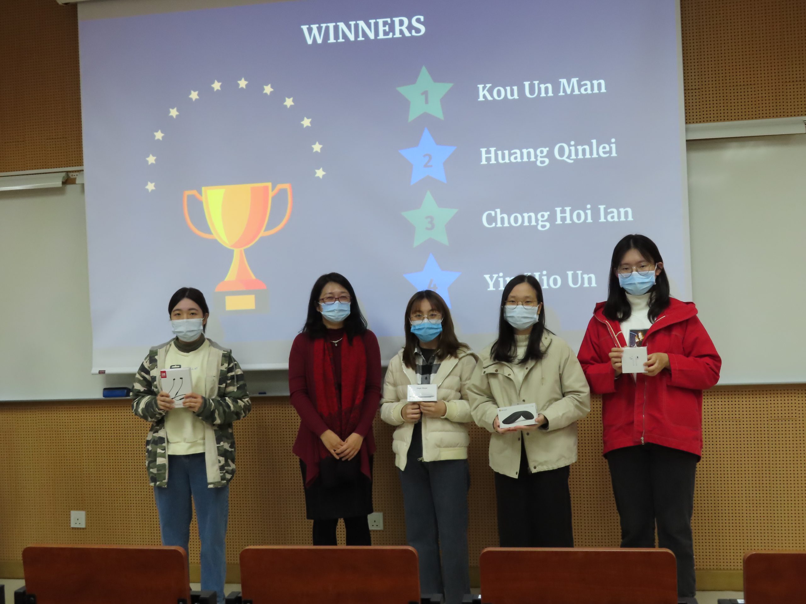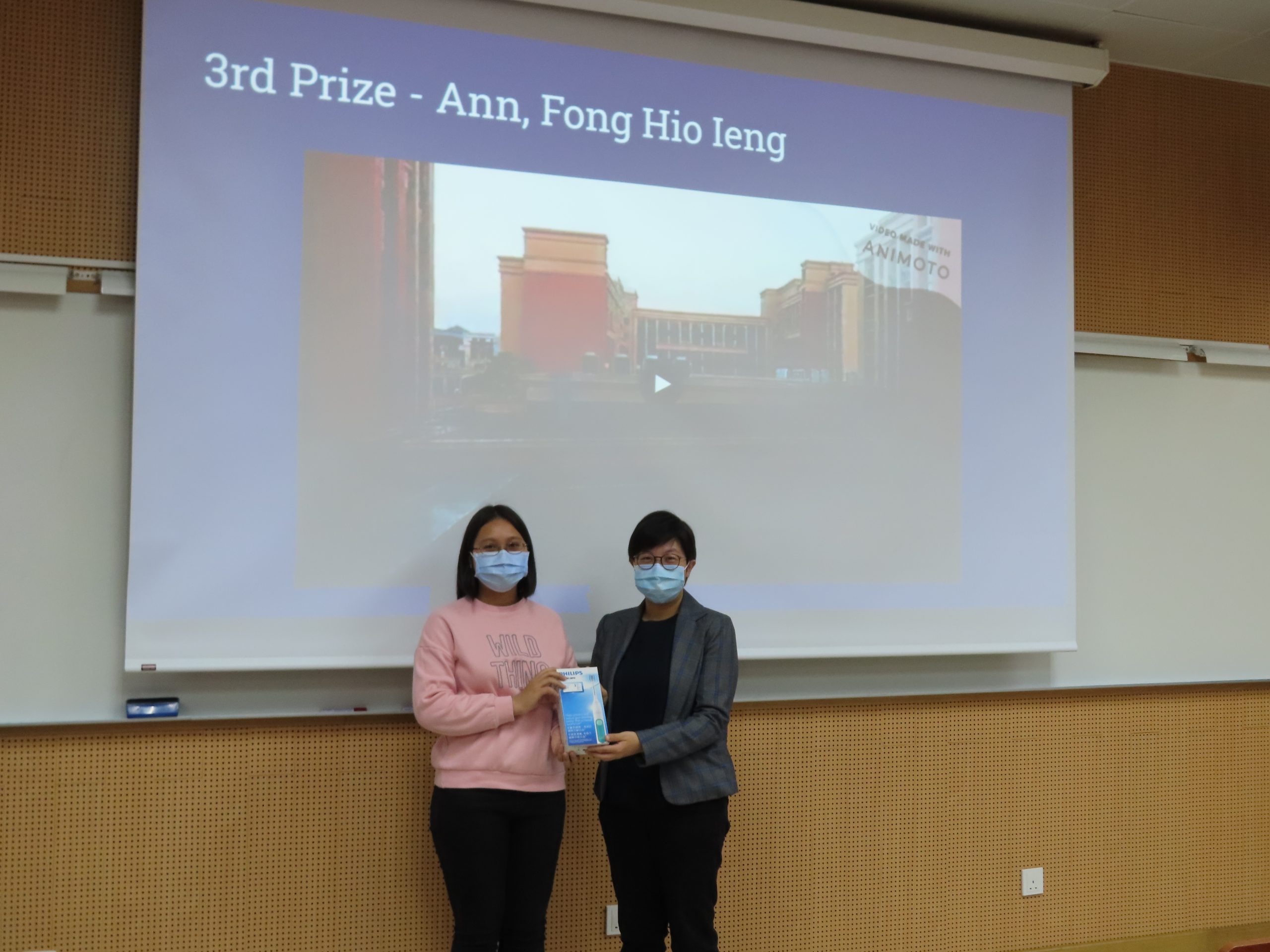 In the first session of the ceremony, the Director of ELC, Prof. Katherine Chen gave an opening speech for all the participants and presented the prizes to the winners of the “2020 ELC i-Learner Contest”. She mentioned that successful English learning takes regular and persistent practice, and she was happy to see the students using the “i-Learner English for Universities platform” for regular practice to improve their English. More than 600 current ELC students participated in the i-Learner Contest and the top twelve won the prizes. The top winner, Ms. Kou Un Man, a student of EELC1002 Interactive English II, completed an impressive 84 e-lessons with an average score of 92/100 in just 8 weeks!
