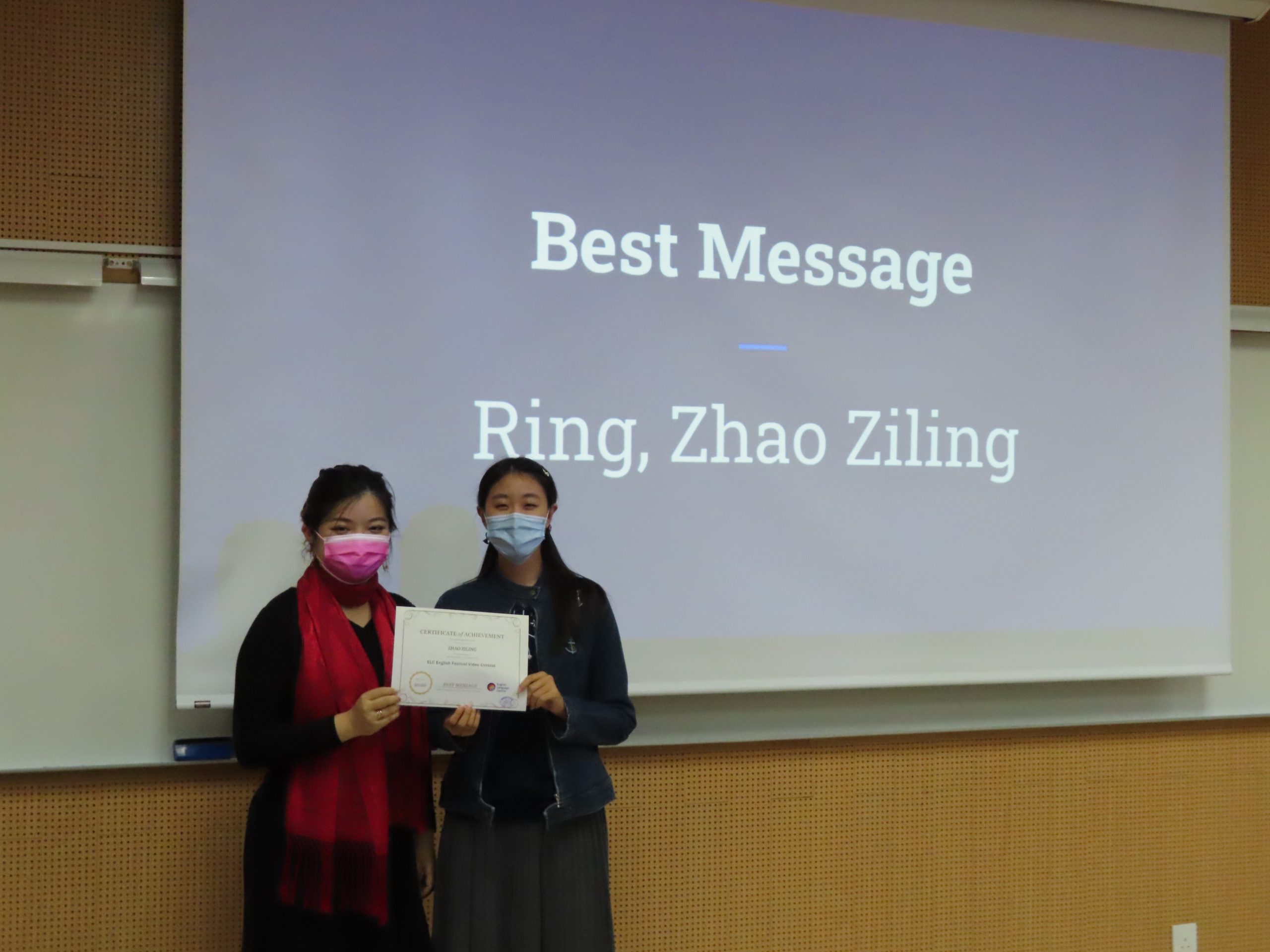 | Winning Prizes | ZHAO ZILING (Year 2, FBA) | “Best Message” |