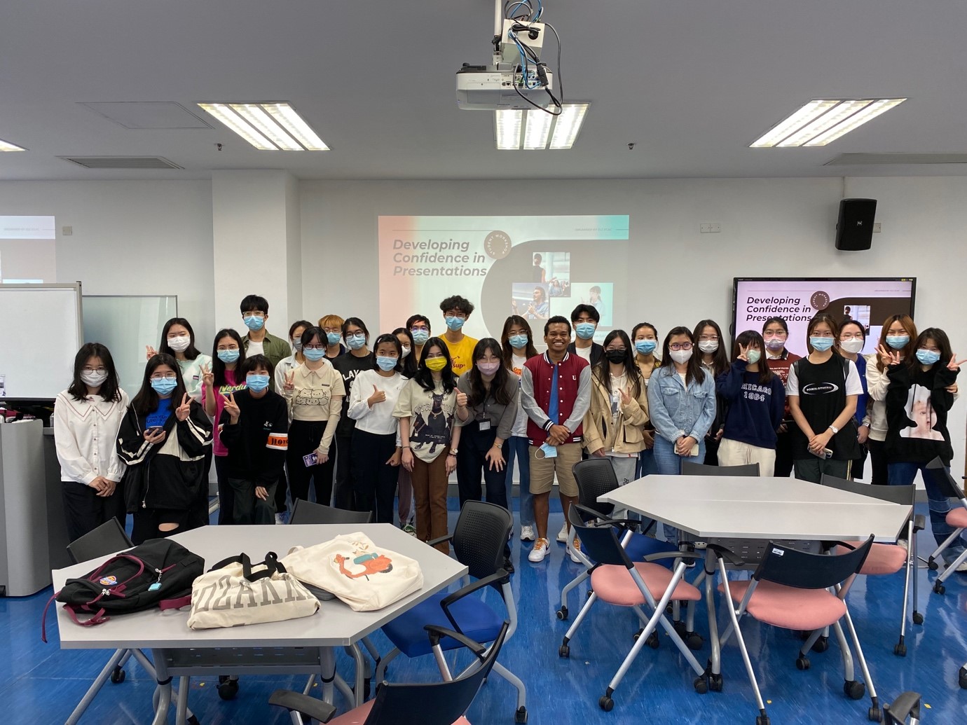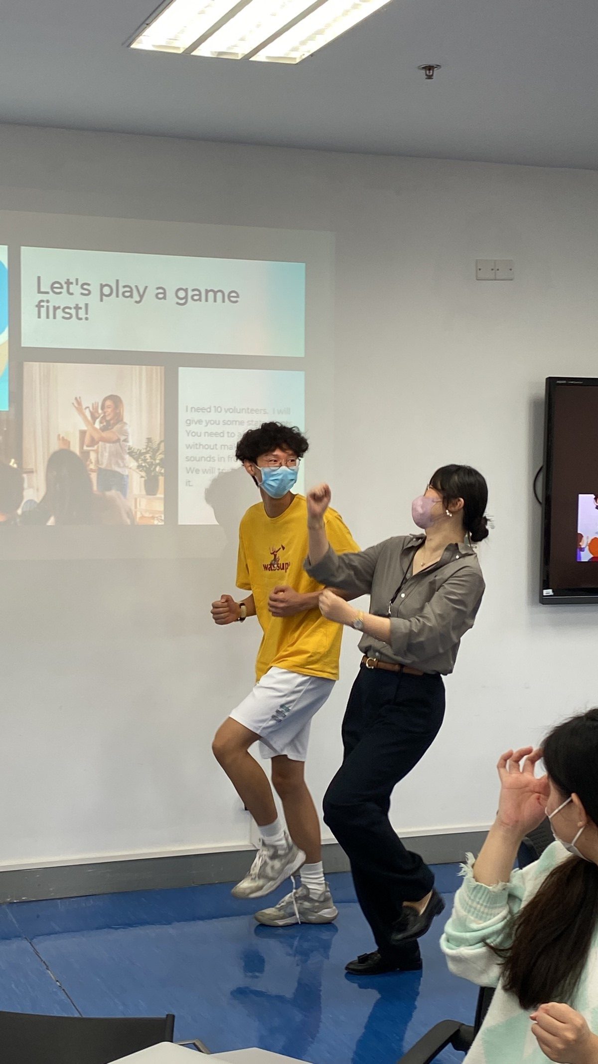 In the workshop, Ms. Gao shared some ways how to relieve the mental fear and tension through relaxation techniques such as the famous Lamaze breathing method, holding something in hand, high power poses, and others. Students were invited to practice the techniques together and participated in a highly interactive series of activities to allow them to experience handling their fears and develop their confidence when making presentations in the future.