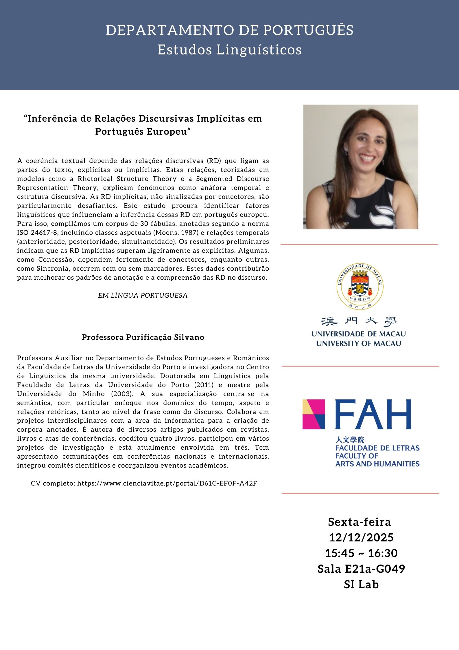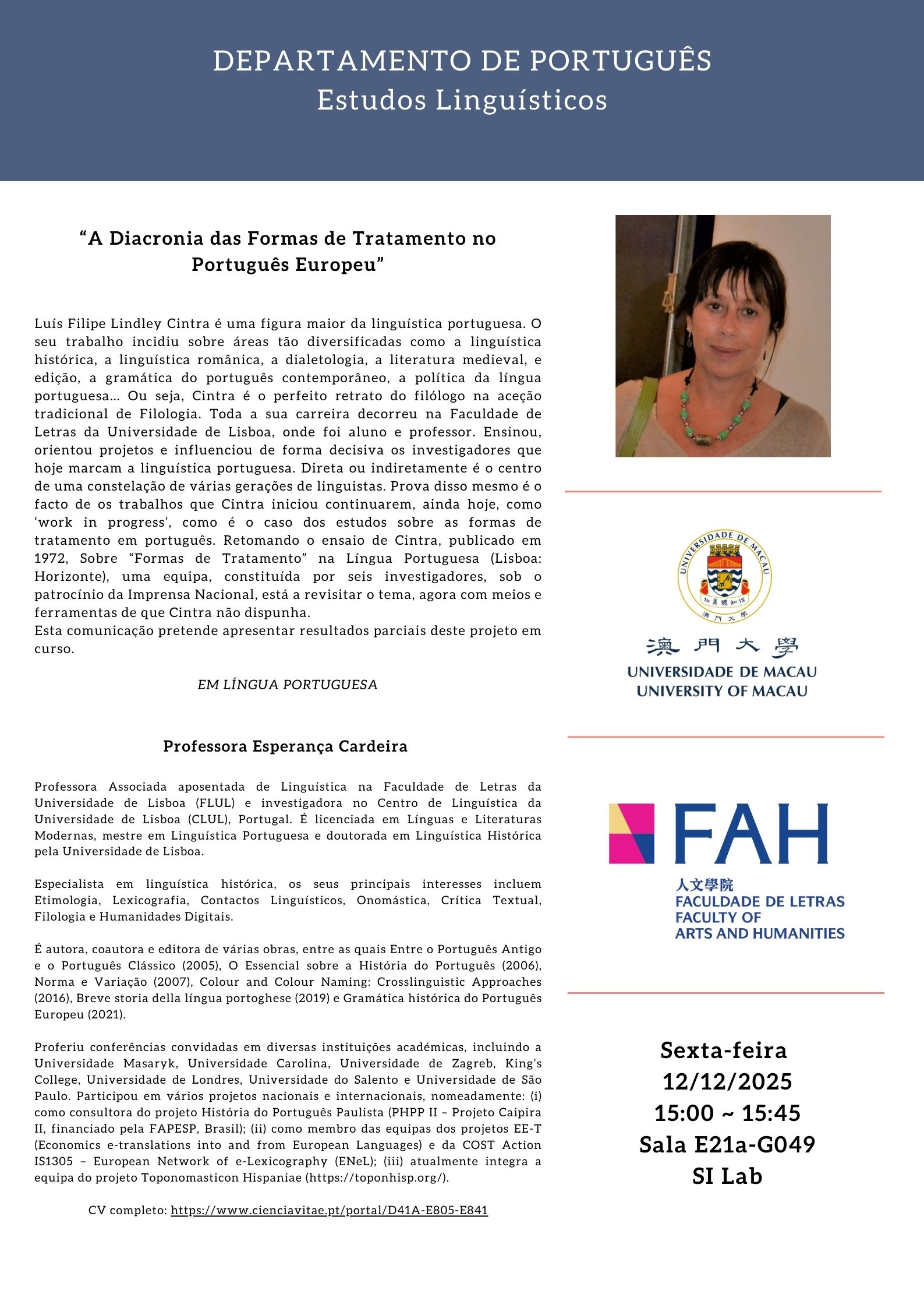 We are most pleased to invite all to attend the following Seminars on Portuguese Linguistics this Friday, 12/12/2025, at 3:00pm in room E21a-G049 (SI Lab).