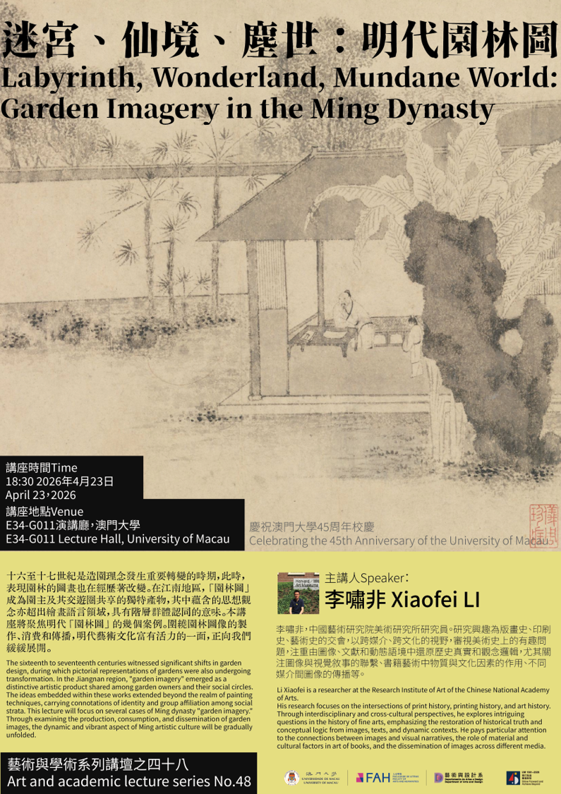 FAH-DAD : Art and academic lecture series No.48: Labyrinth, Wonderland, Mundane Word: Garden Imagery in the Ming Dynasty