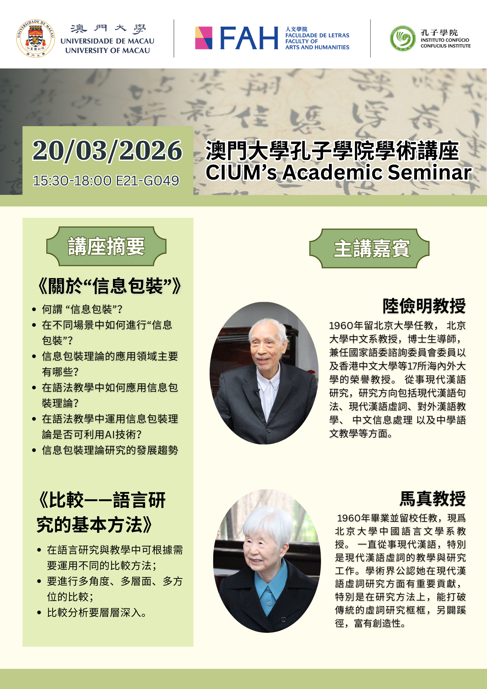 E21-3118Dear Professors and Students, We are most pleased to invite all to attend the following Seminar by UM Distinguished Visi ...