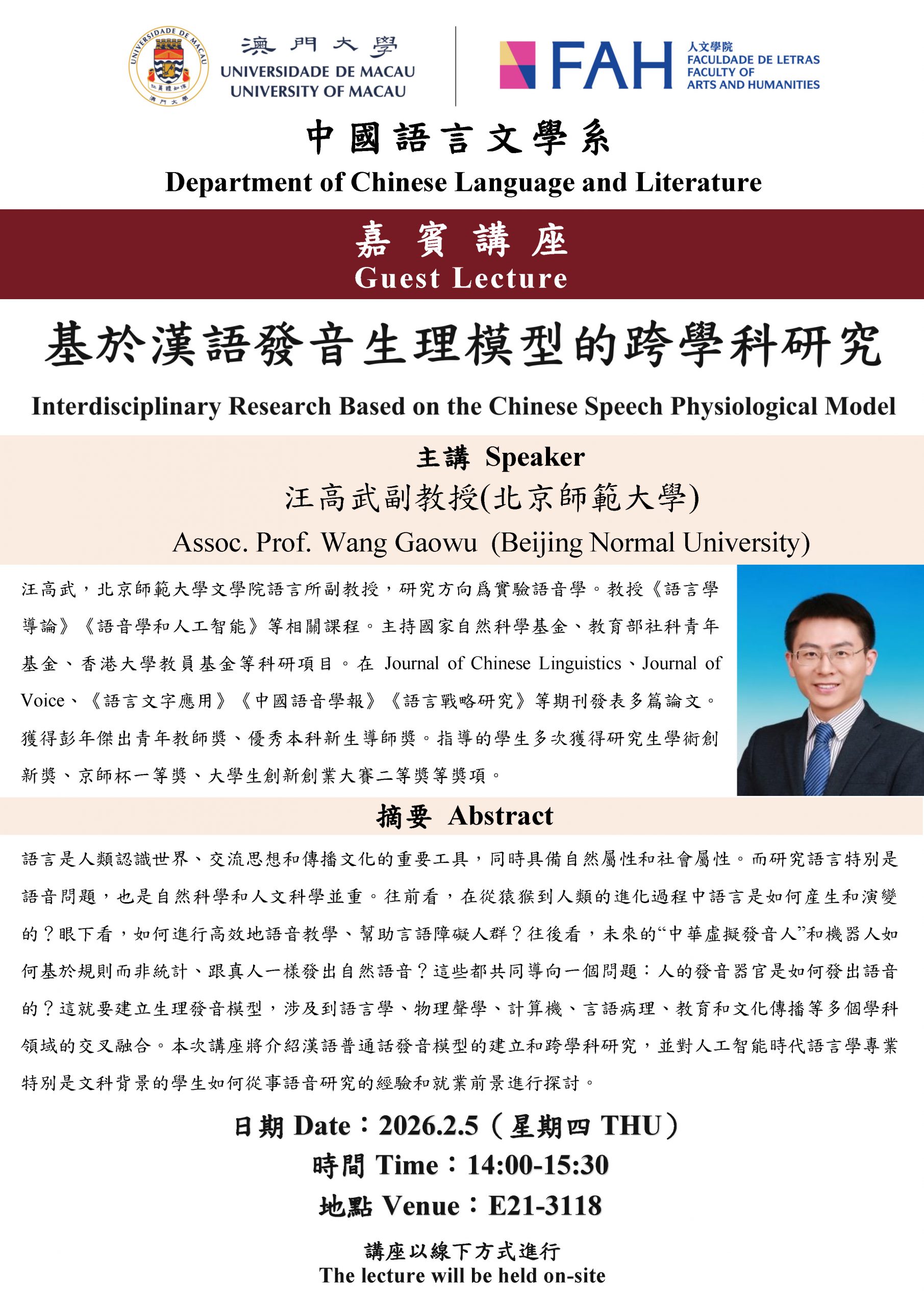E21-G049We are delighted to invite you to the 3rd Lecture of the FAH Macao Humanities Forum (2025/2026) scheduled on 4 February ...