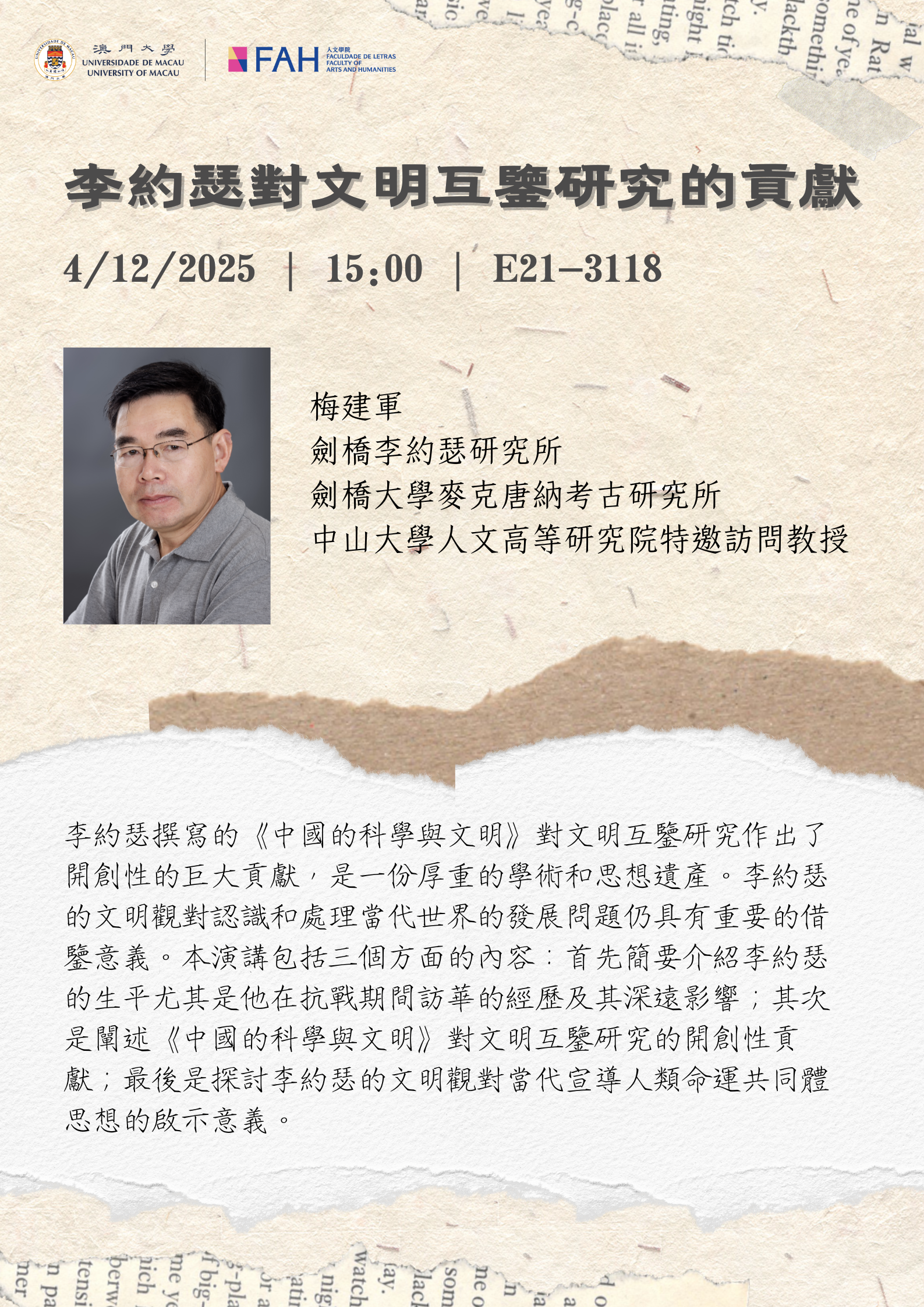 José Cardoso Pires (1925–1998) is considered as an indispensable reference in 20th-century Portuguese literary history. His works offer profound analyzes of the intricate interplay between power, identity, and memory. Through a distinctive narrative style and acute social observation, he chronicled Portugal's social transformations and individual destinies during the latter half of the 20th century. This exhibition will explore Cardoso Pires' literary heritage and spiritual world through three core dimensions—Voices, Glances, and Memories—offering a multi-faceted, immersive experience. It examines how literature holds the weight of both individual and collective memory, thereby fostering public engagement with and better understanding of his works. Exhibition – Voices, Glances, Memories: Commemoration of the Centenary of José Cardoso Pires Date and Time: 22/09-19/12/2025 Venue: Sky Garden, […]