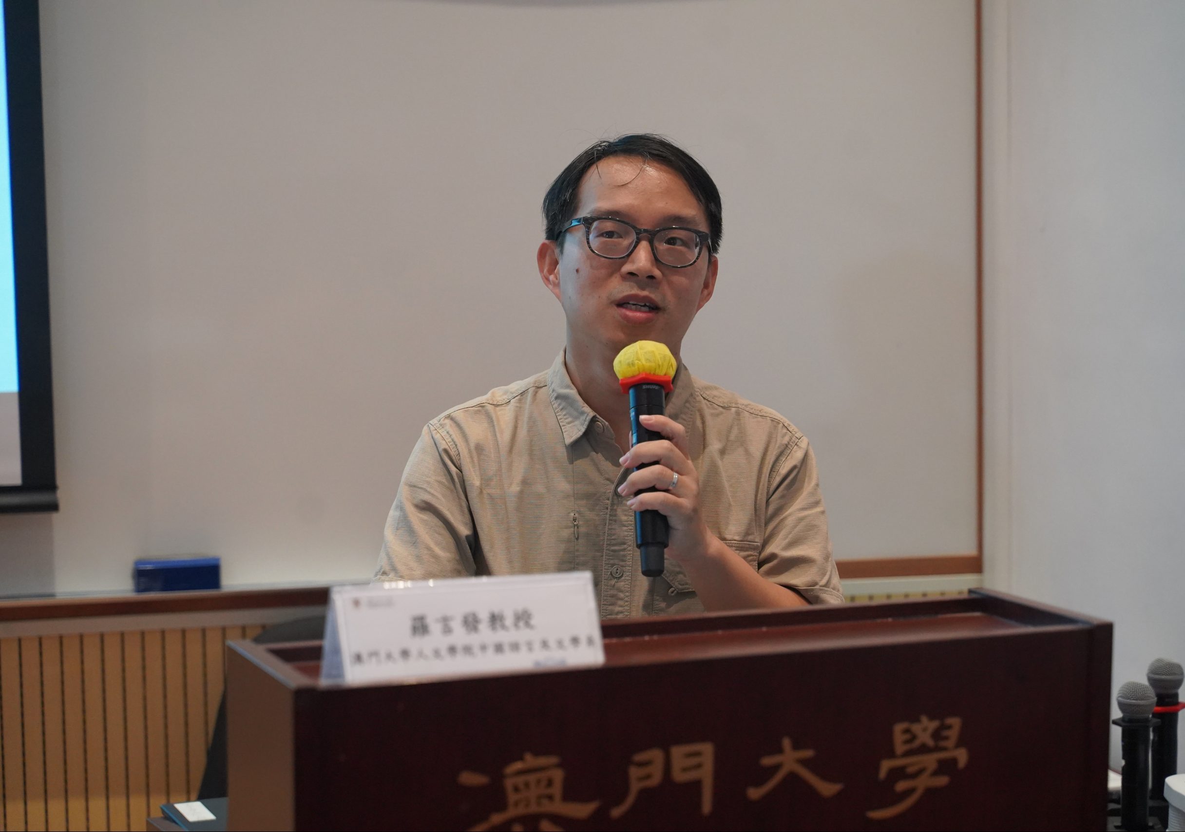 - 中國語言文學系羅言發教授(左)與北京師範大學會同書院院長助理肖勝利(右)互贈紀念品