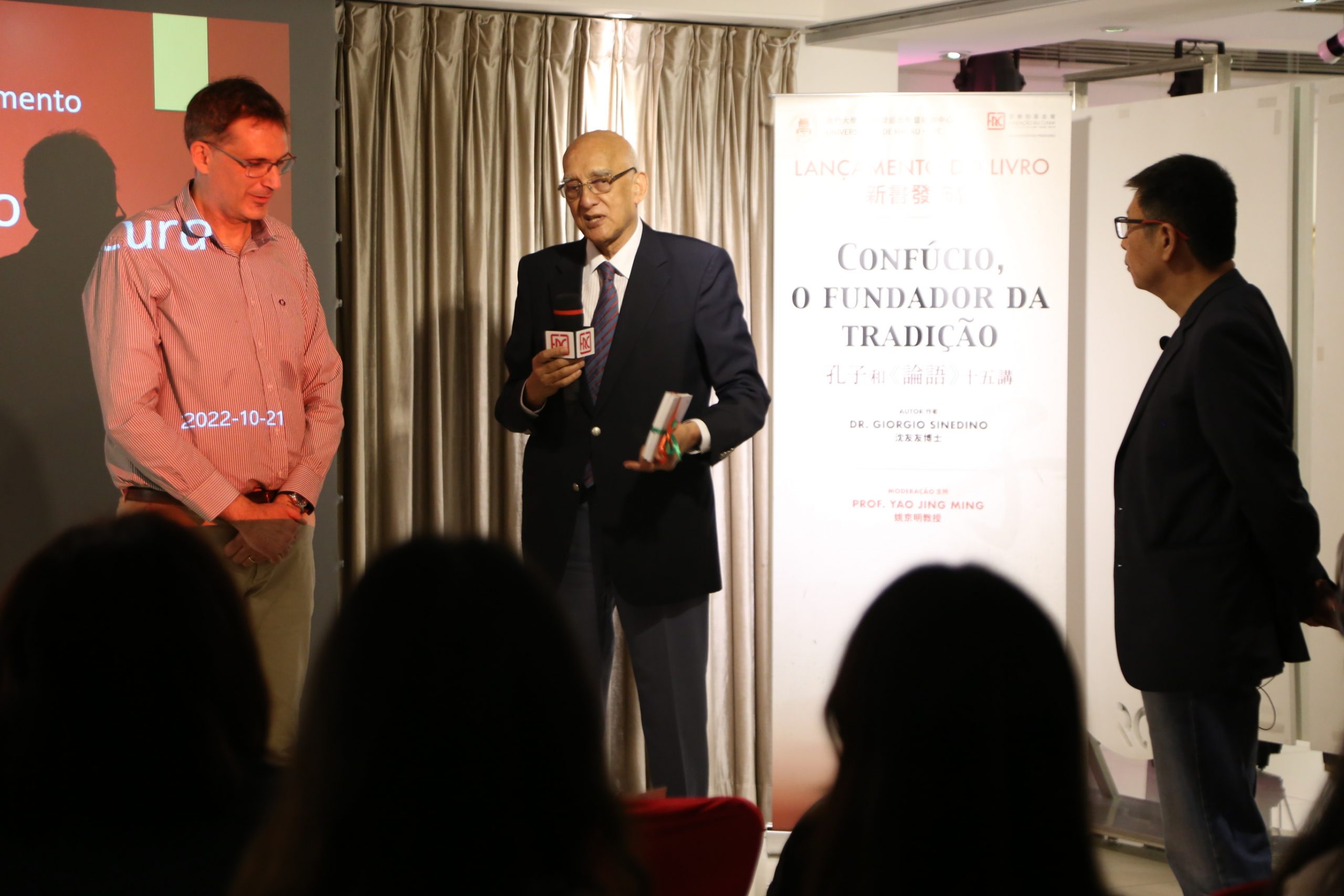 No dia 21 de Outubro de 2022, o Centro de Ensino e Formação Bilingue Chinês-Português (CPC) da Universidade de Macau (UM) realizou, na Fundação Rui Cunha, o lançamento do livro “CONFÚCIO, O FUNDADOR DA TRADIÇÃO” escrito por Giorgio Sinedino, sinólogo e tradutor brasileiro. O evento foi co-organizado pela Fundação Rui Cunha. No evento, estiveram presentes o Professor João Veloso, director do Departamento de Português da Universidade de Macau, o Professor Yao Jing Ming, director do CPC e o Dr. Rui Cunha, Presidente e fundador da Fundação Rui Cunha.