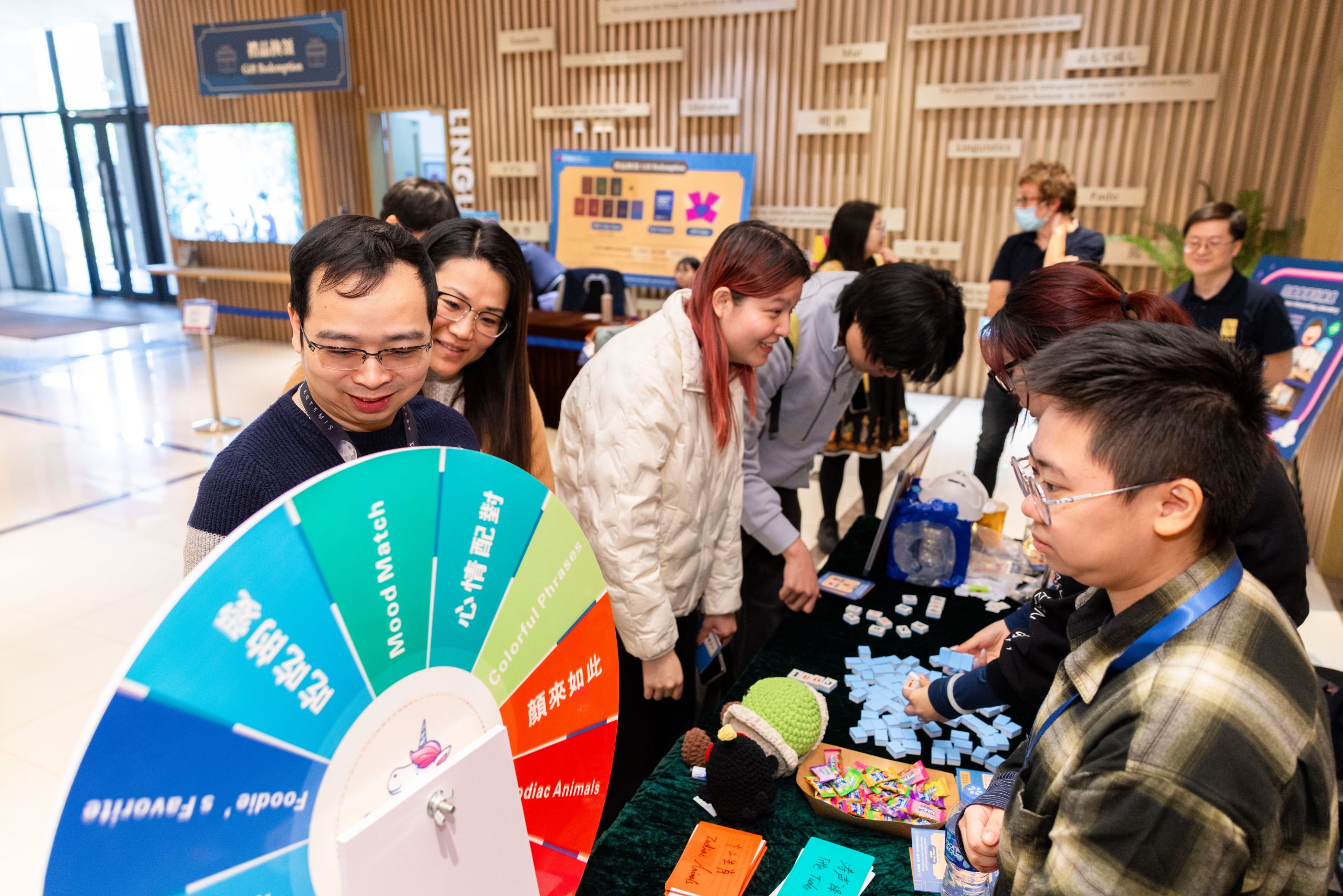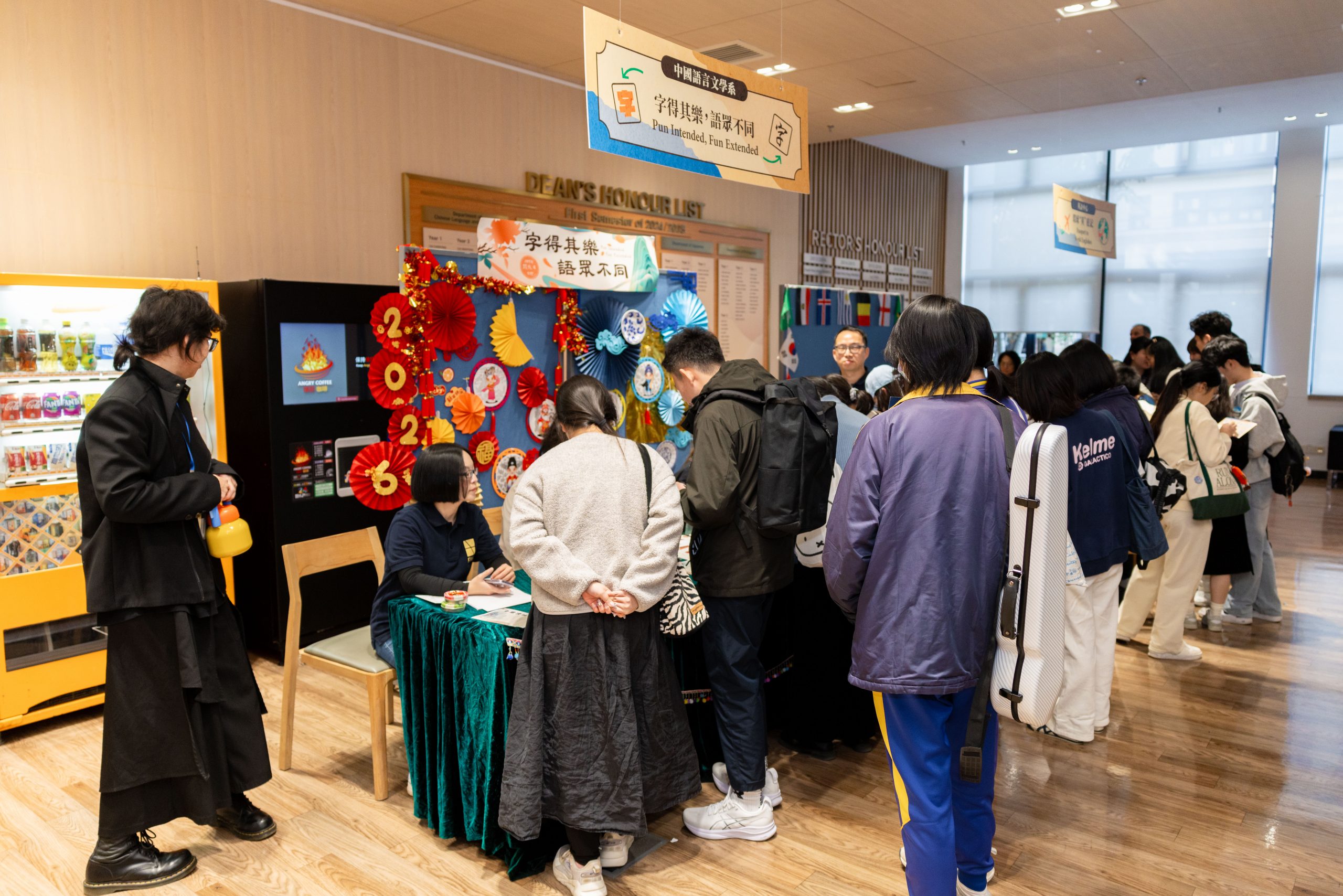 活動現場氣氛熱烈,各部門及人文學院學生會別出心裁設計的遊戲攤位成為人氣焦點。從考驗反應與知識的「答題投壺挑戰」、層層過關的「歷史過三關」,到探索文字奧妙的「漢字研習室」與「字得其樂,語眾不同」,再到充滿異國文化趣味的「環球『英』遊記」、「溯本求源」及「猜猜外來語!」,訪客在輕鬆互動中學習語言文化知識,於遊戲中體會人文學科的廣度與深度。藝術與設計系的「拼出我自己」攤位亦深受歡迎,參加者動手創作、自由拼貼,展現個人風格與想像力,感受藝術與設計的無限可能。