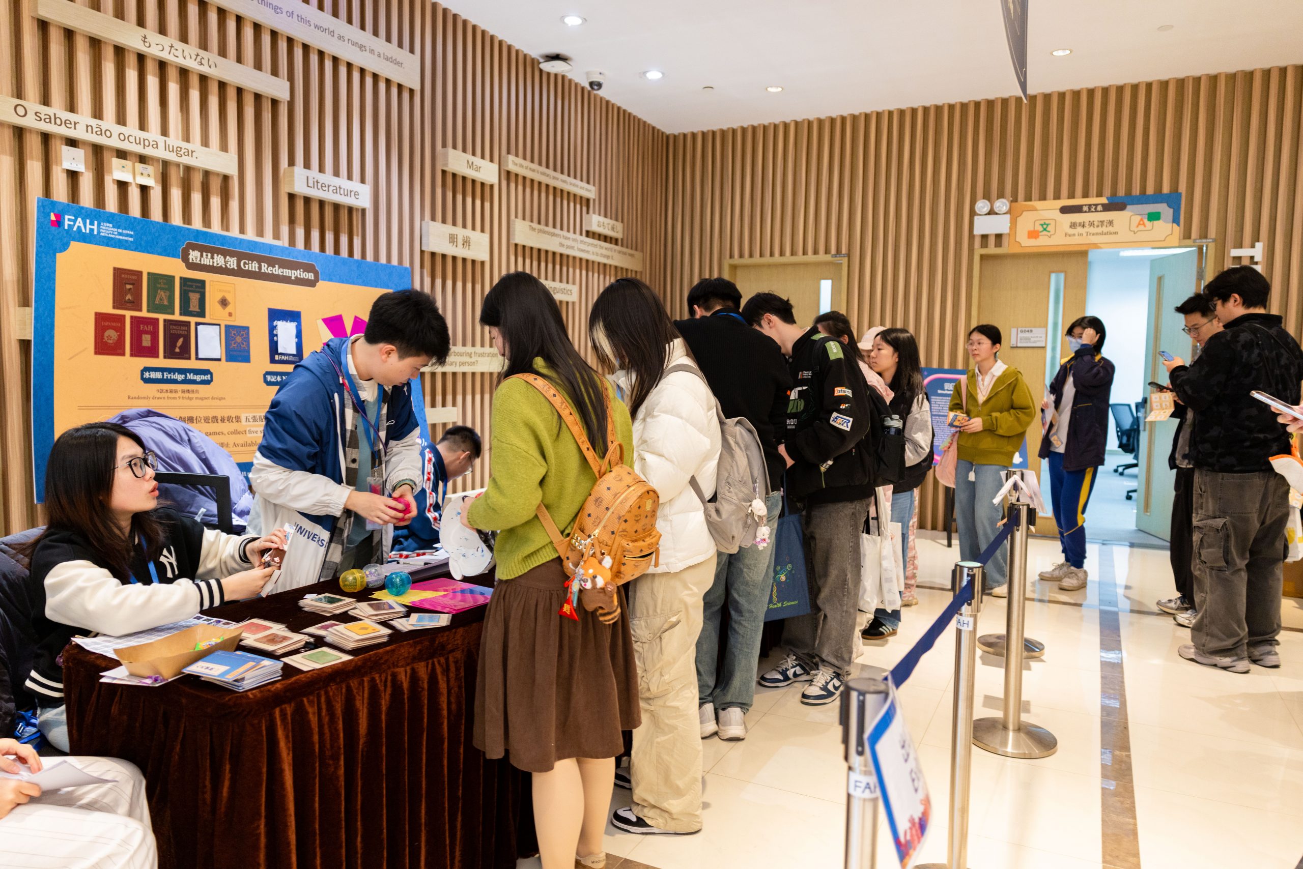 今年,人文學院以「人文天下,澤潤古今」為主題,精心策劃了十二個互動遊戲攤位、兩場展覽,以及人文學院入學講座,透過寓教於樂的方式,全面展示學院在語言、文化、歷史、哲學、藝術及跨文化研究等領域的教學特色與學術成果。本次活動更榮幸獲中聯辦教育與青年工作部部長李雪飛、澳門教育及青年發展局局長龔志明等貴賓蒞臨參觀指導,了解人文學院在藝術與設計等領域的發展成果。