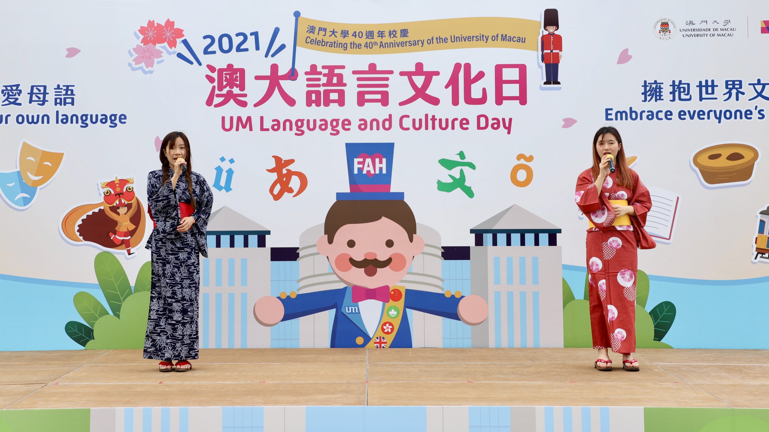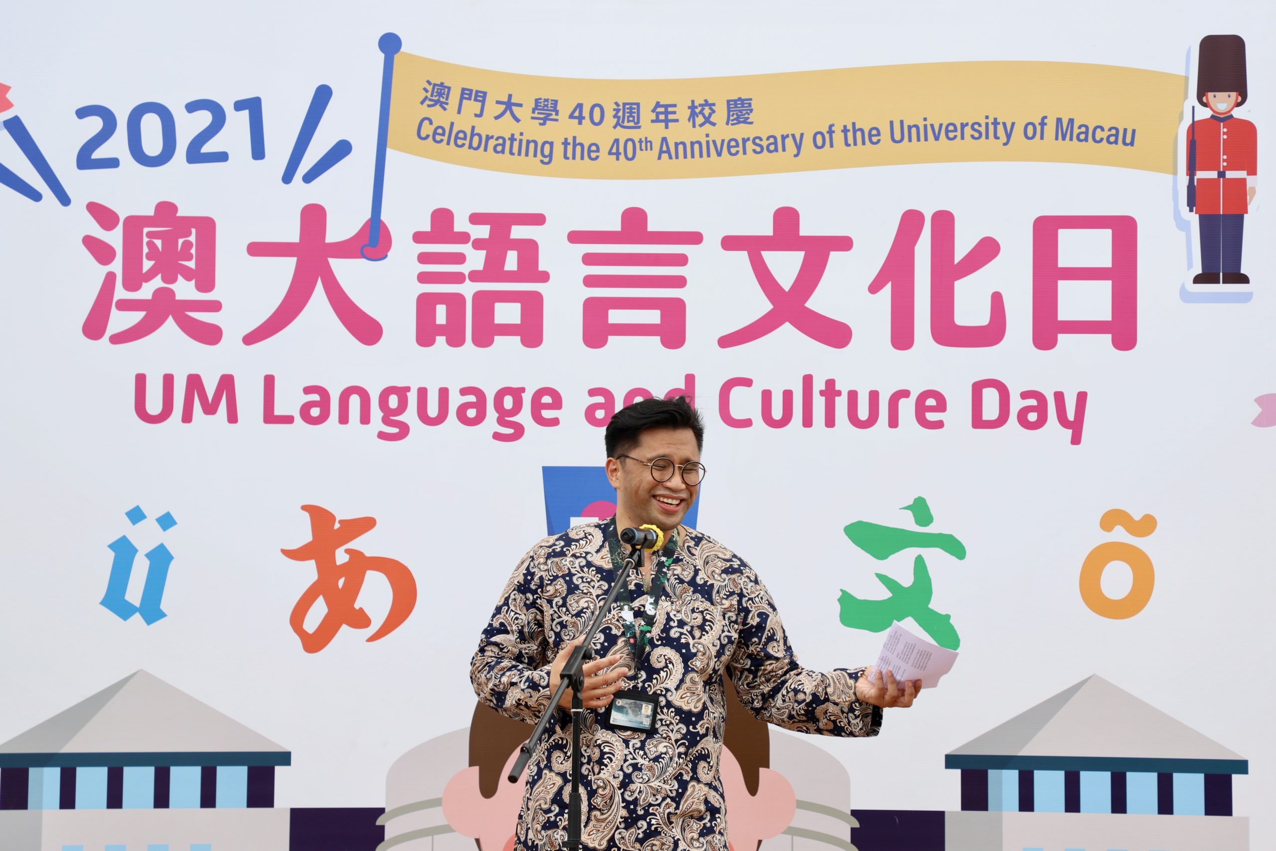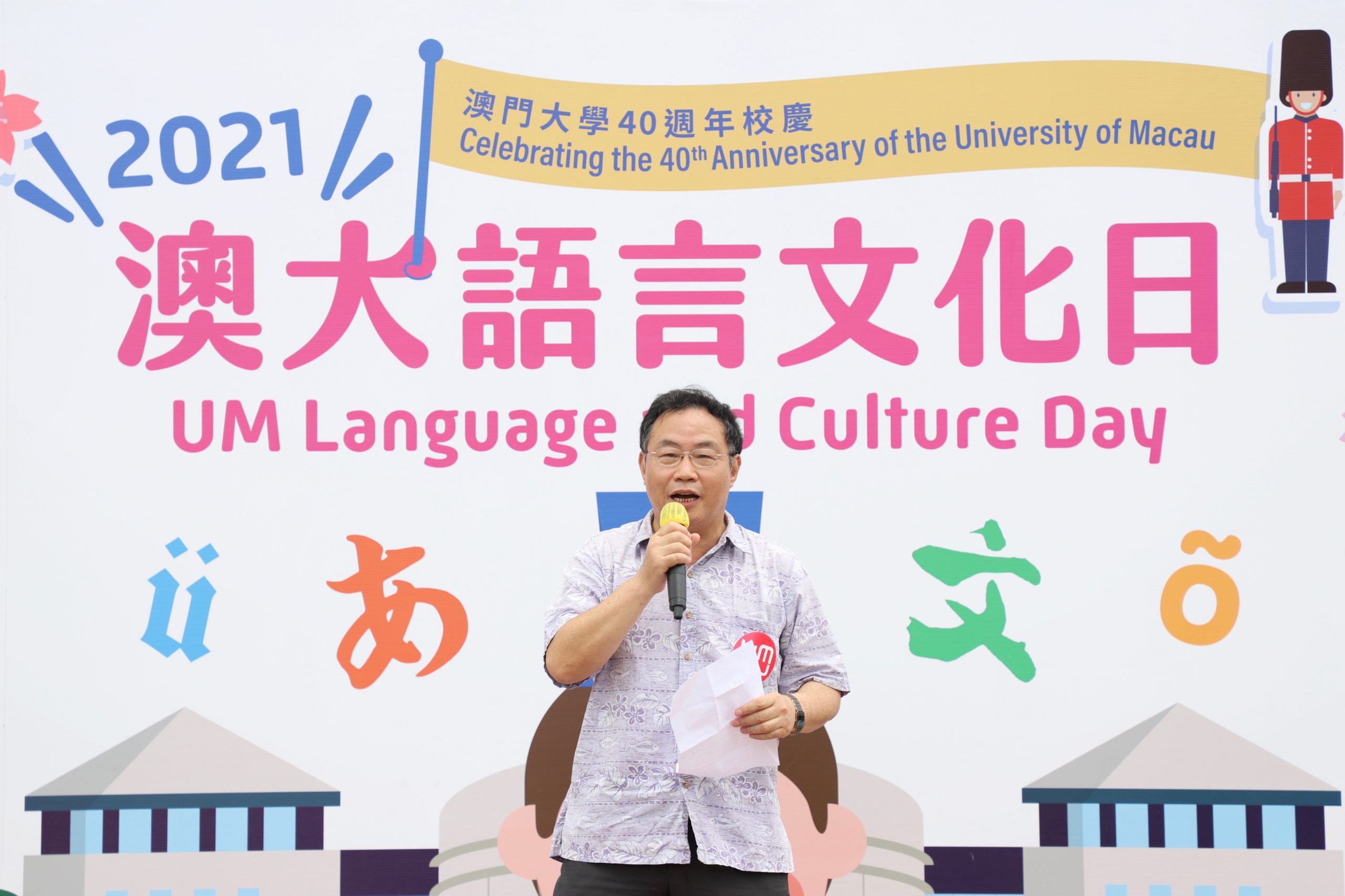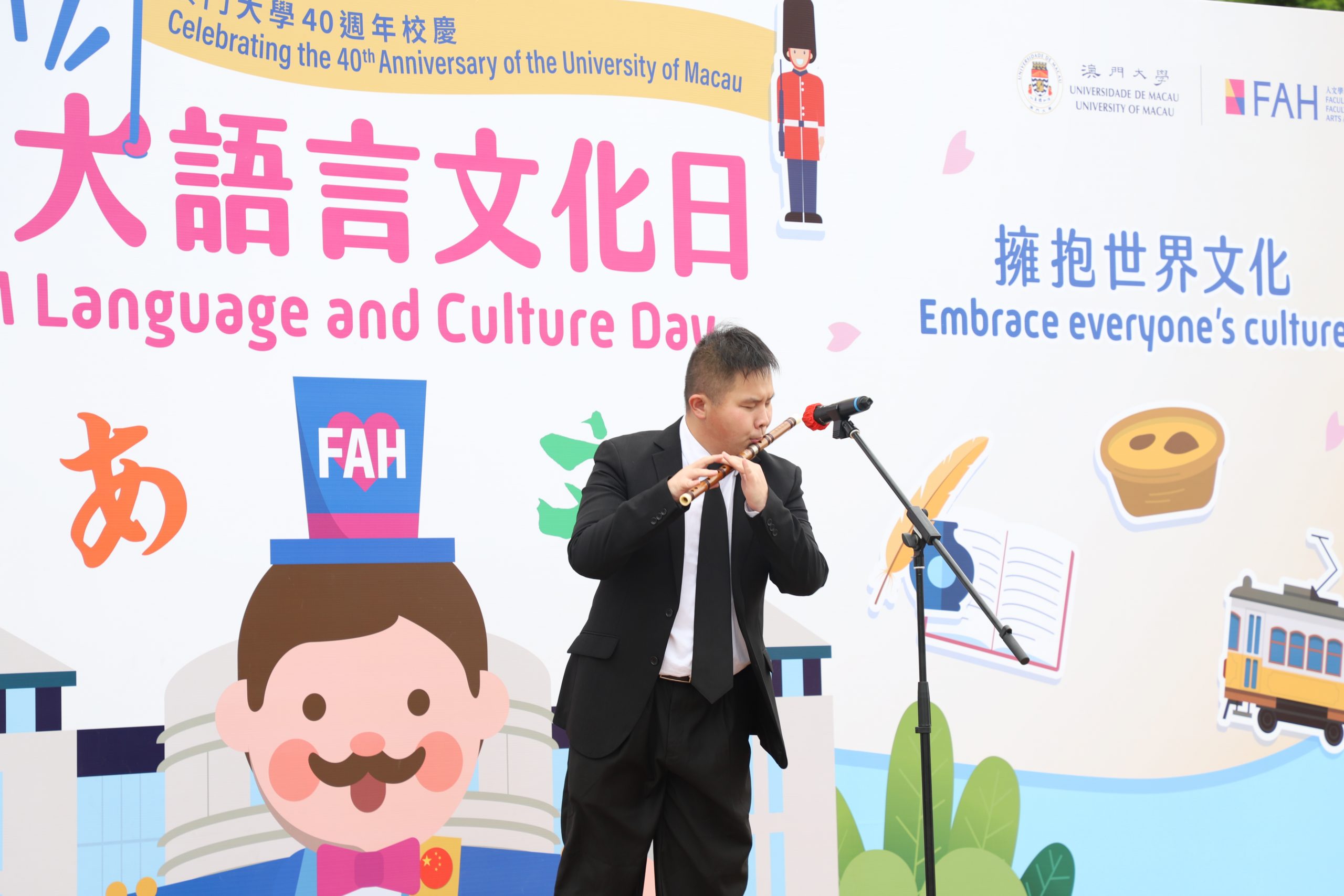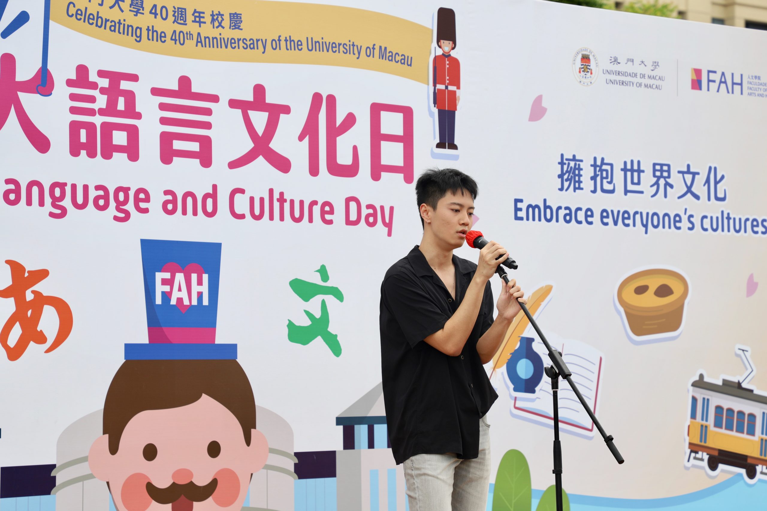 O Dia da Língua e Cultura é um evento emblemático do campus organizado pela FAH. No seu discurso de boas-vindas, o Director Interino da FAH, Prof. Xu Jie, sublinhou o papel especial que Macau desempenha na sua transição para um Centro Mundial de Turismo e Lazer, complementando que tal objectivo de desenvolvimento não pode ser alcançado sem diversidade linguística e cultural. O Prof. Xu citou o renomado antropólogo e sociólogo chinês Fei Hsiao-Tung para explicar que o nosso mundo só é belo quando respeitamos diferentes valores, línguas e culturas.