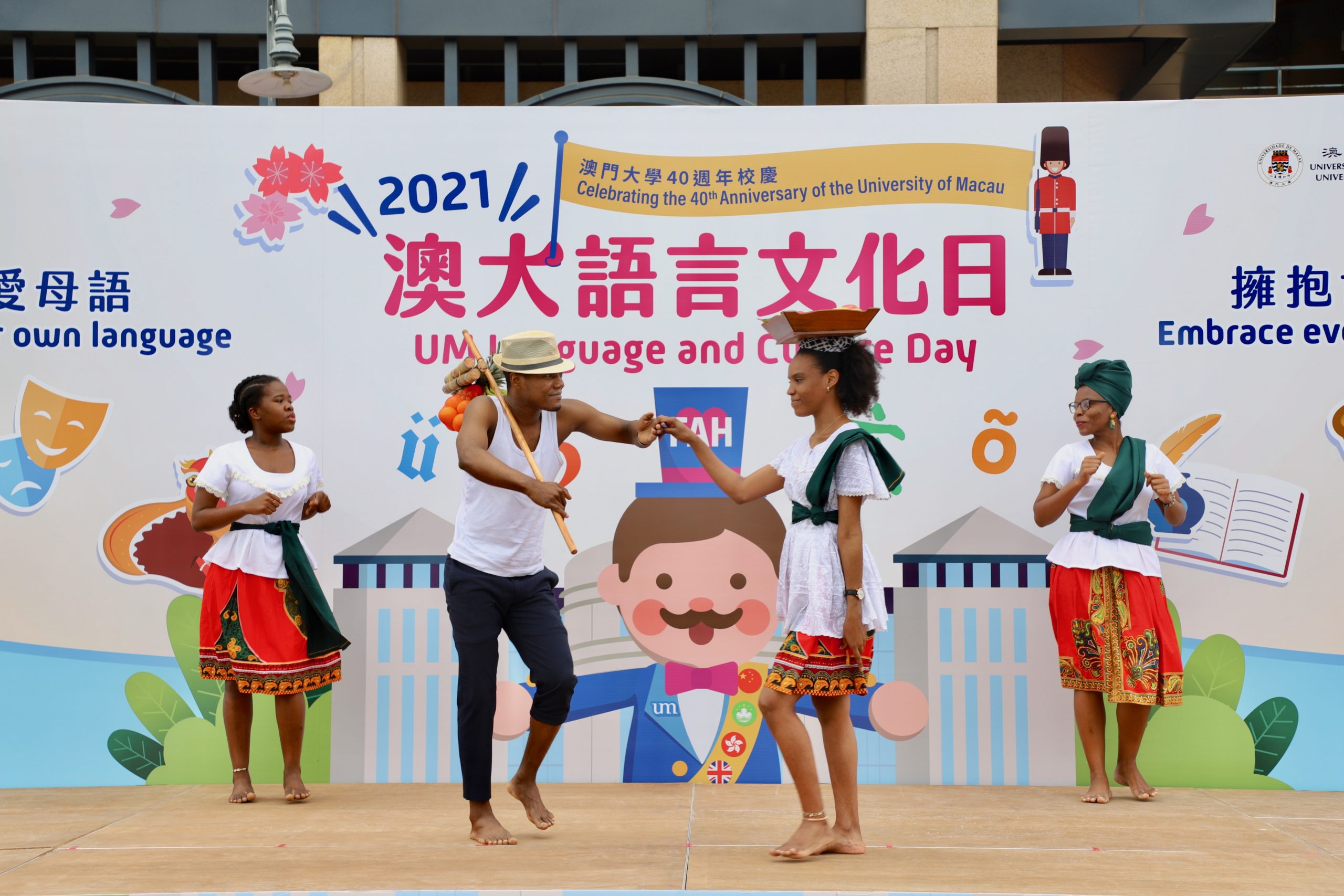Em celebração ao 40º aniversário da UM, a Faculdade de Letras (FAH) realizou recentemente o 3º Dia da Língua e Cultura da UM. Com o tema “Valorize a sua própria cultura; Acolha a cultura de todos”, o evento apresentou performances culturais e folclóricas de várias culturas e contou com a Feira Internacional de Língua e Cultura e, ainda, com workshops de língua. A actividade atraiu muitos alunos e funcionários académicos e administrativos.
