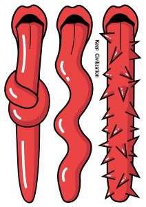 Work Introduction: Language is a vessel of culture and a symbol of civilization. This poster employs three exaggerated depictions of the tongue to satirize certain negative communication behaviors prevalent in today’s society—such as glibness, sharp-tongued remarks, and the deliberate distortion of truth.